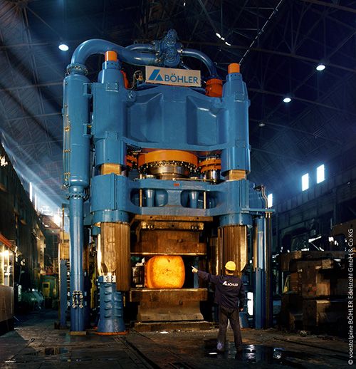 Forging and extrusion presses driven by water hydraulics offer significant advantages compared to oil-hydraulic equipment. They are environmentally friendly and do not cause soil remediation of oil-contaminated grounds. Furthermore, no fire safety devices are necessary and they can be positioned quickly and precisely.